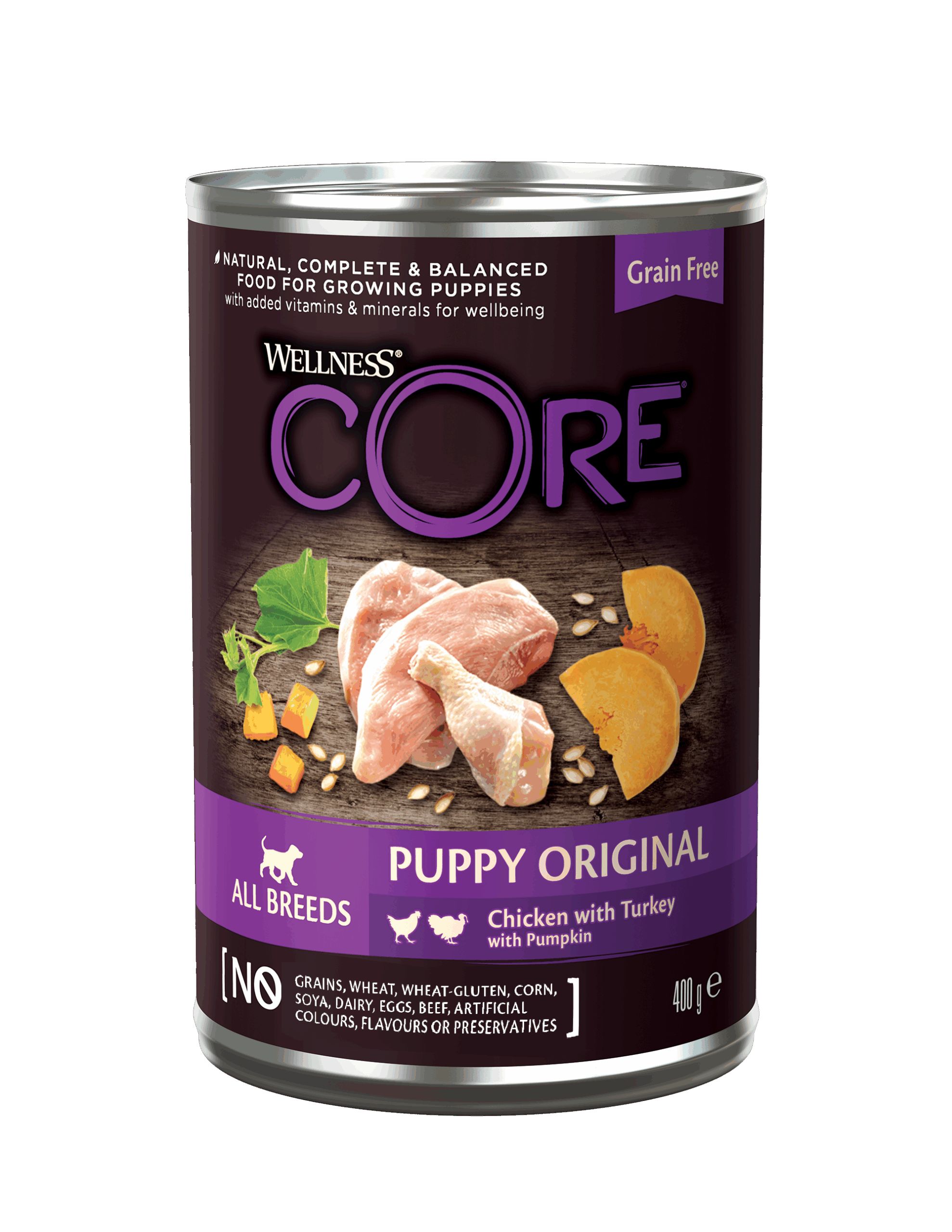 Protein‑rich puppy food featuring chicken, turkey, and pumpkin for balanced nutrition. Ideal for growing puppies needing high protein and gentle digestion.
